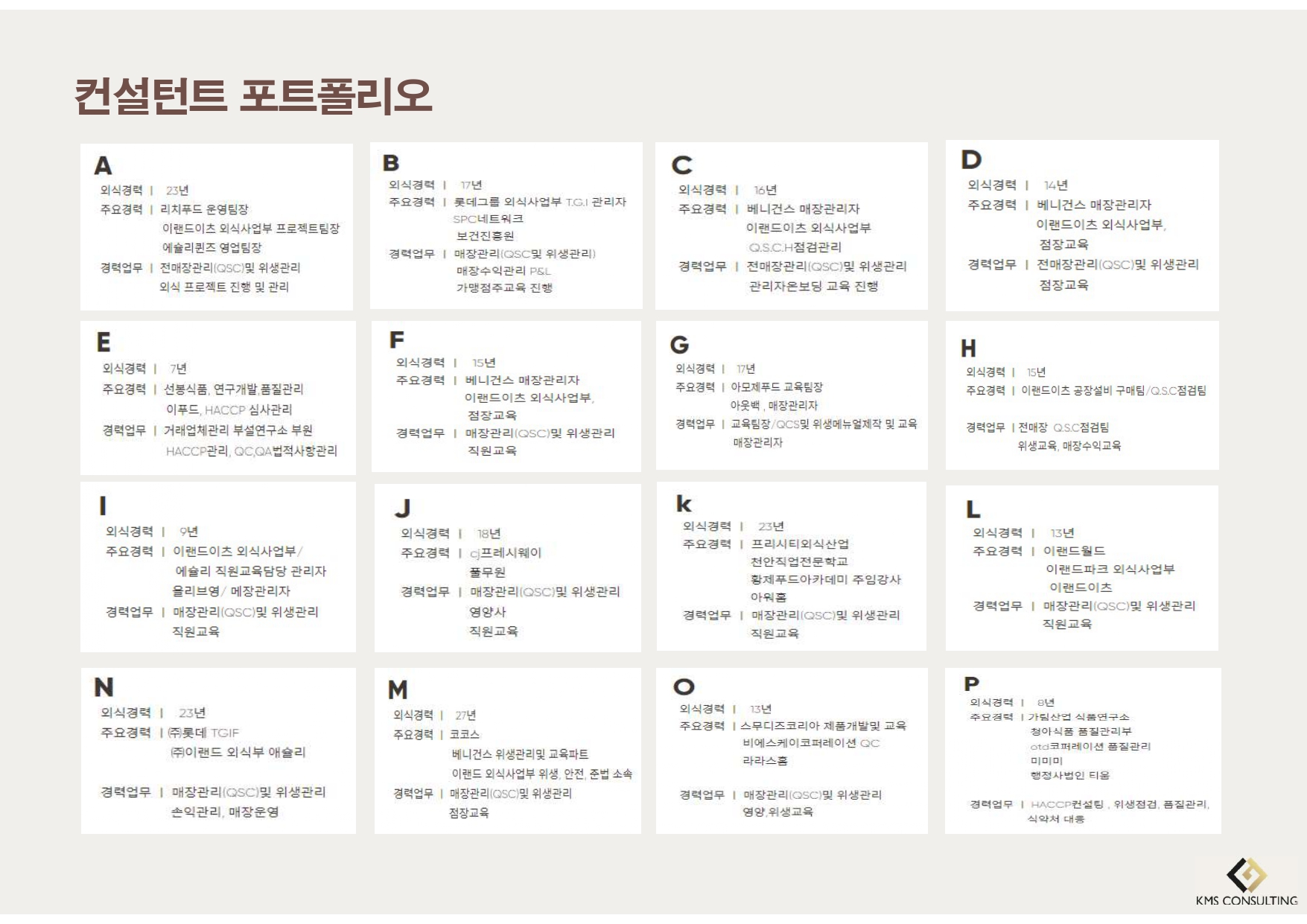 4. 15년이상 외식경력의 식품대기업 출신 컨설턴트 라인업